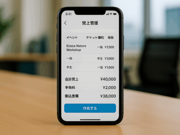 イベントやワークショップのチケット売上を管理できる機能を実装予定です。 運営者は販売状況をリアルタイ …