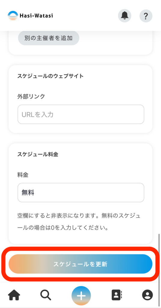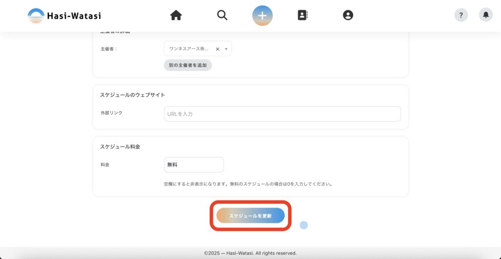 ⑦編集が完了したら、「スケジュールを更新」ボタンを押します。