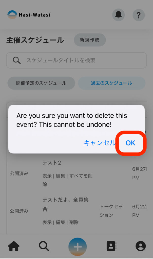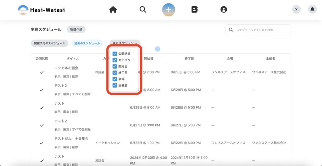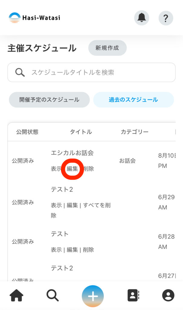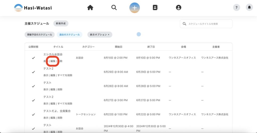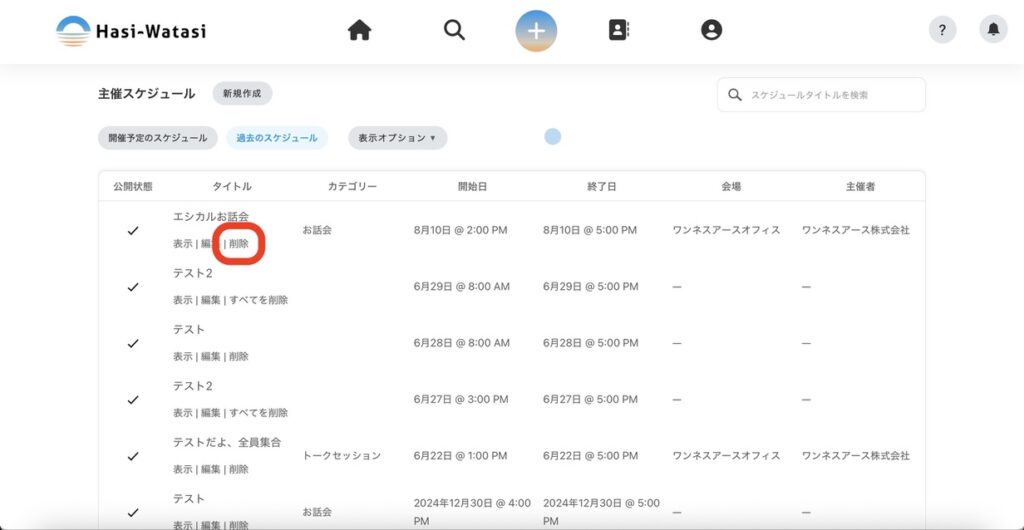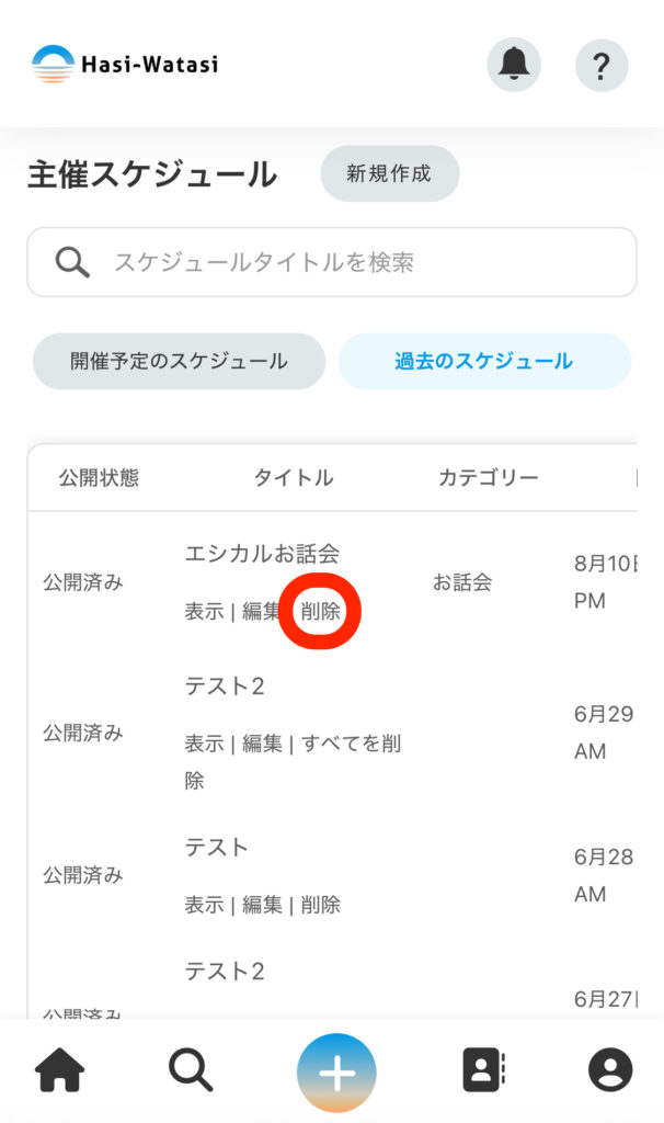 ④「過去のスケジュール」タブを押すと、終了したスケジュール一覧を見れます。