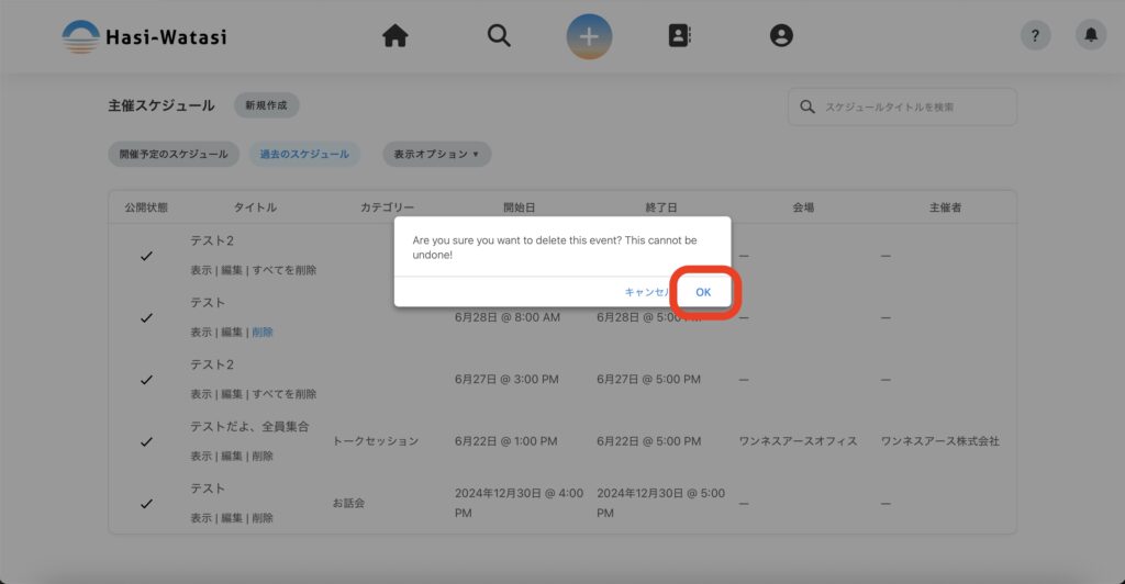 ⑧スケジュールを削除したい場合は、削除したいスケジュールの「削除」リンクを押します。
