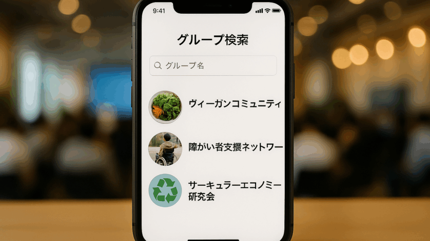 作成されたグループをキーワードやカテゴリー、タグで検索することができます。