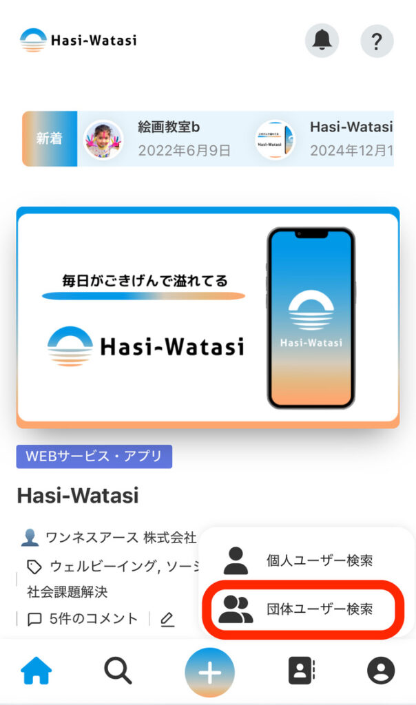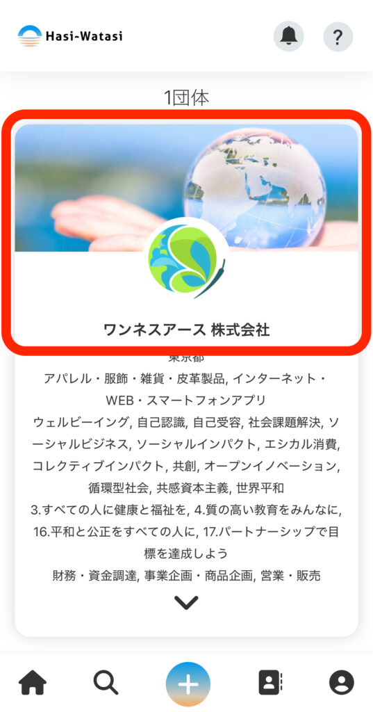 ⑤気になった団体のカバー写真かアイコン、名前のいずれかを押すと、プロフィールページに飛びます。