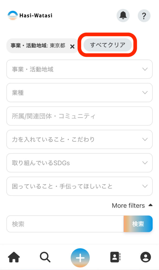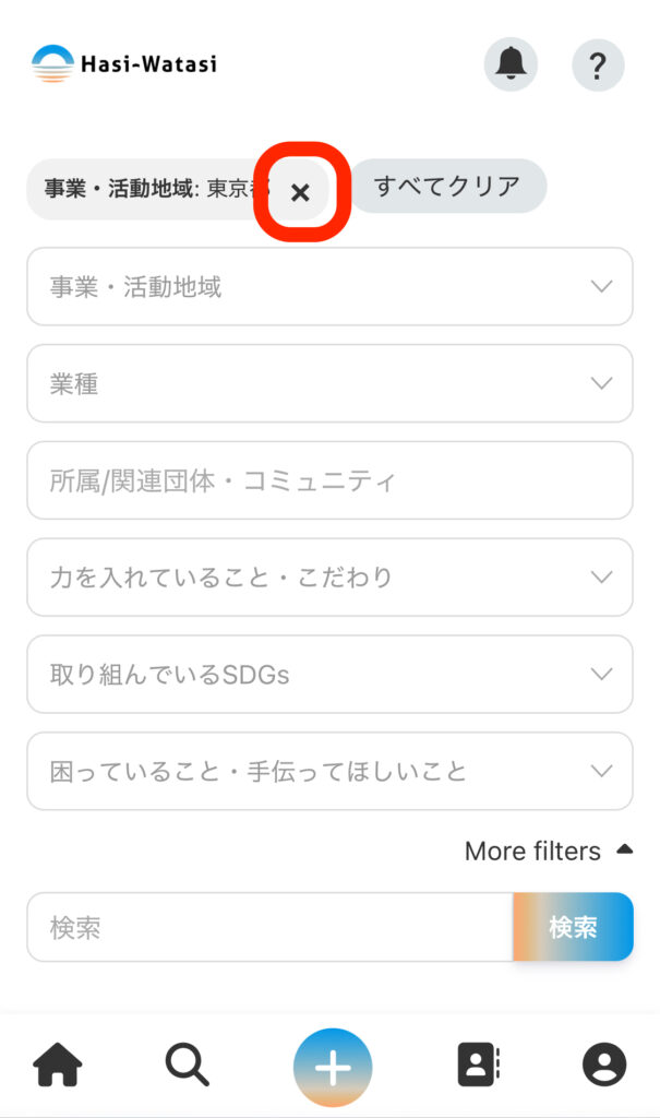 ③フィルターを変えたいときは、×印を押すか、「すべてクリア」を押します。