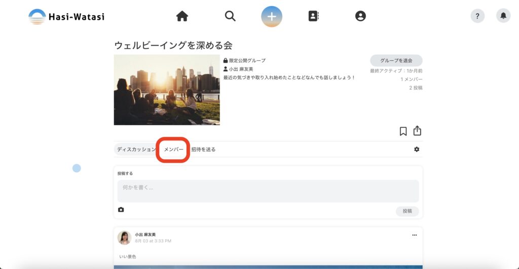 ⑥メンバーの管理をしたいときは「メンバー」タブを押します。