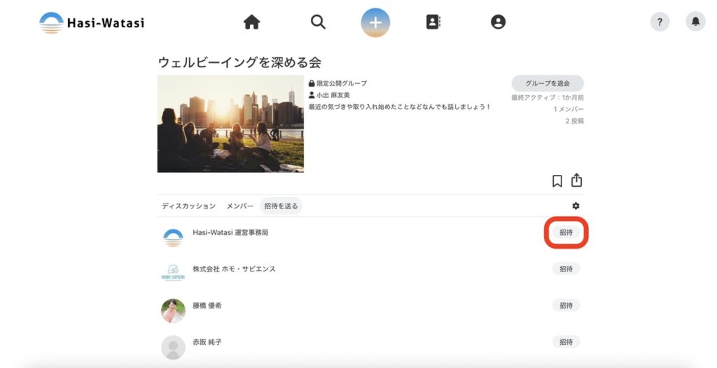 ご自身が管理するグループに他のユーザーを招待することができます。