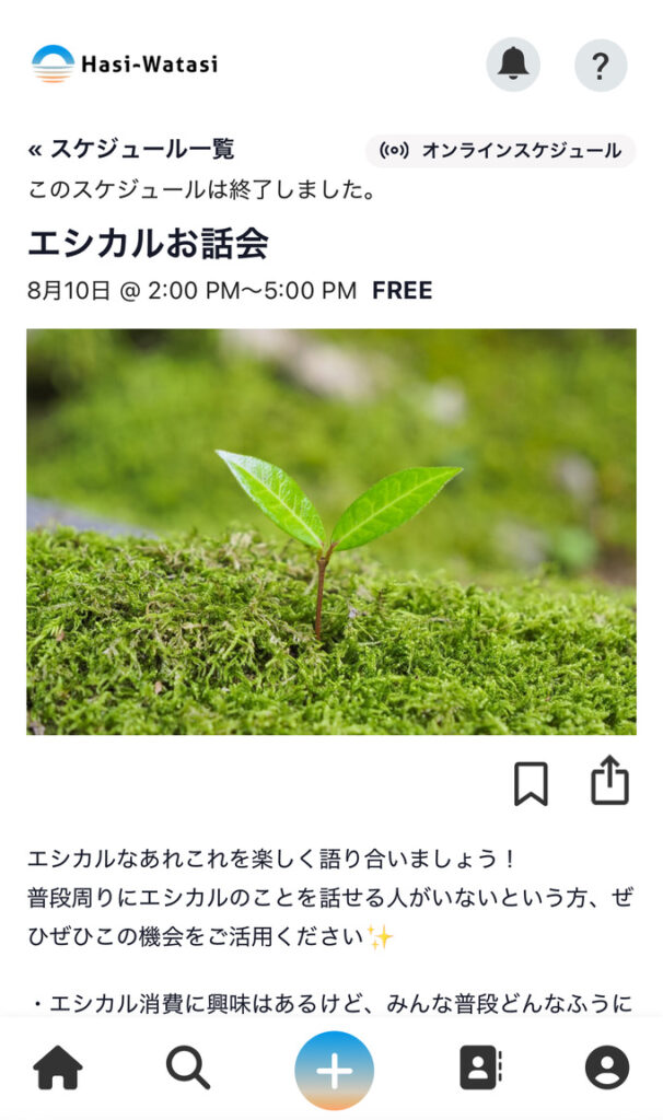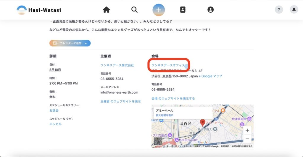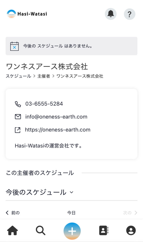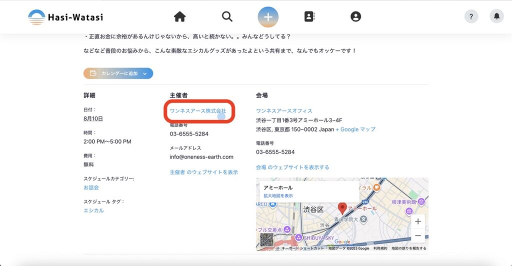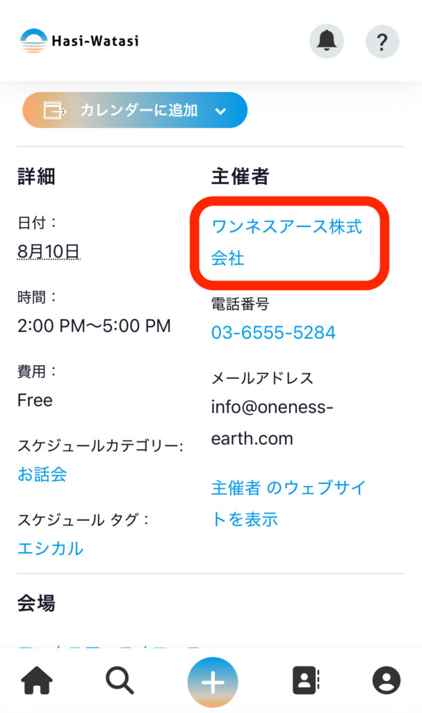⑩主催者のリンクを押すと、主催者の情報を見ることができます。