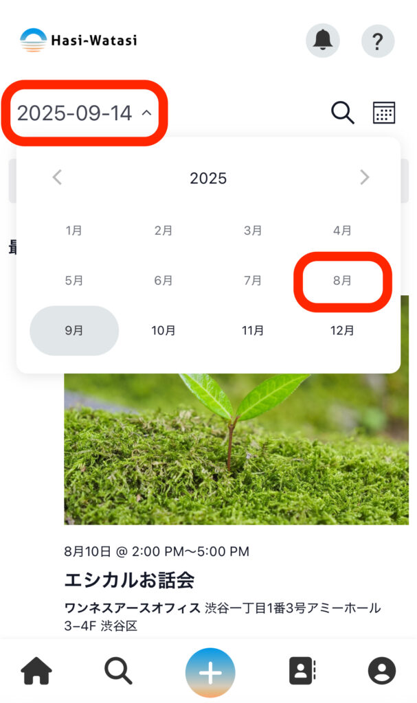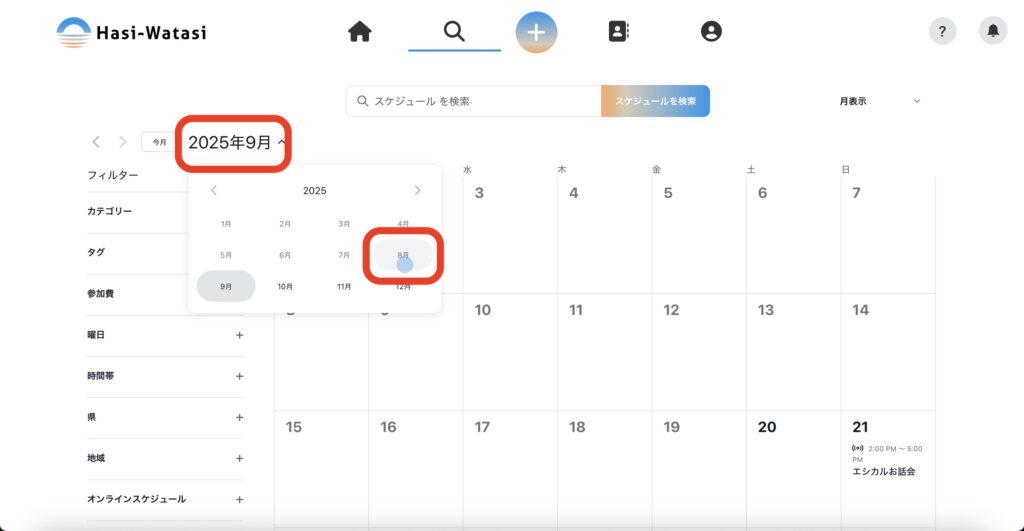 ③上部の年月の部分を押すと、違う年月に移動ができます。