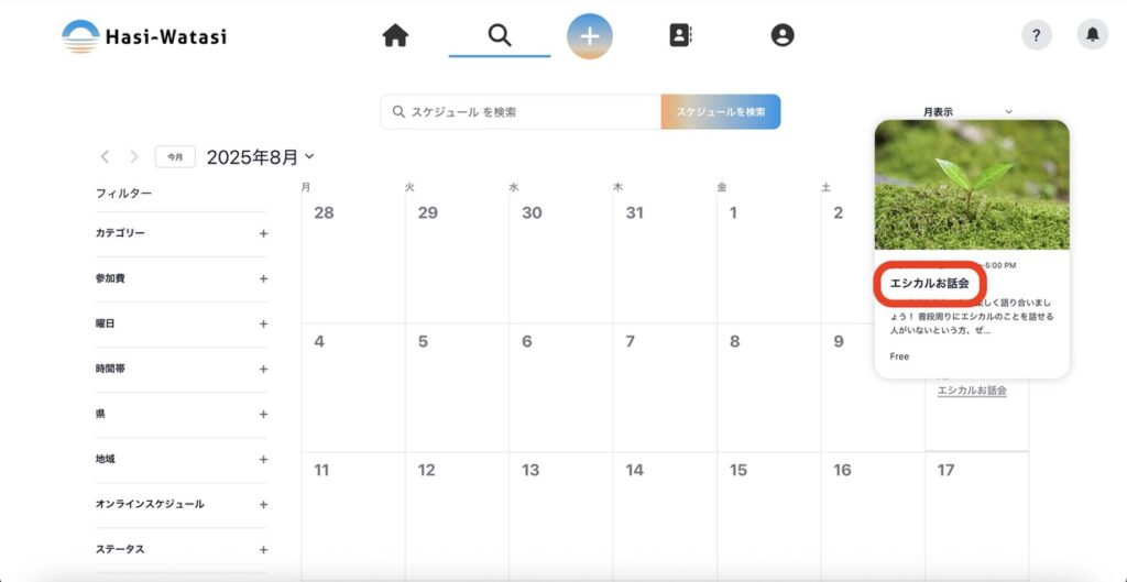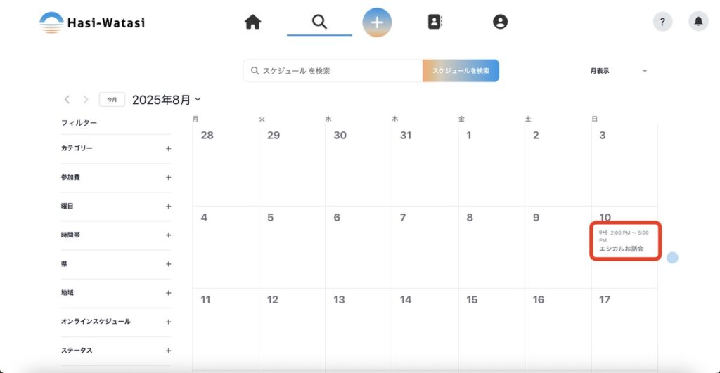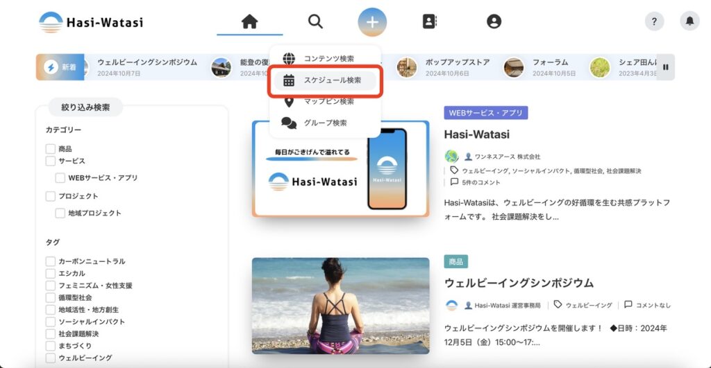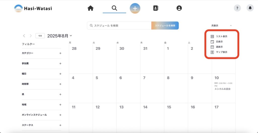 投稿されたスケジュールを、さまざまな方法で検索することができます。