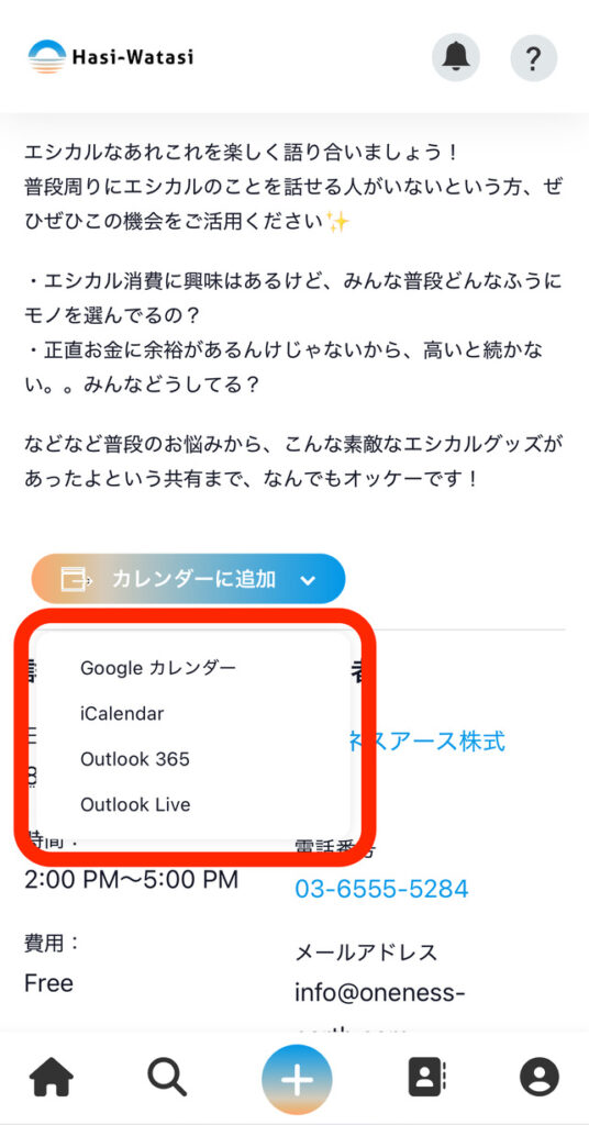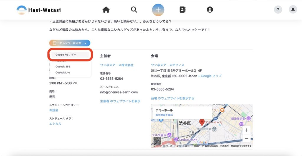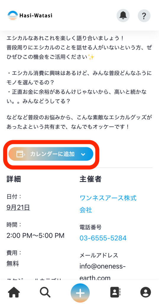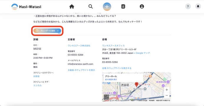 ⑨「カレンダーに追加」ボタンを押すと、ご自身のカレンダーにスケジュールを追加することができます。
