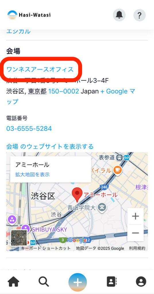 (11)会場のリンクを押すと、会場の情報を見ることができます。