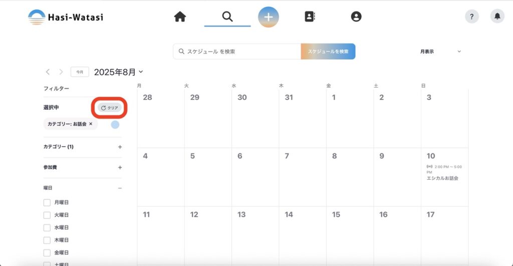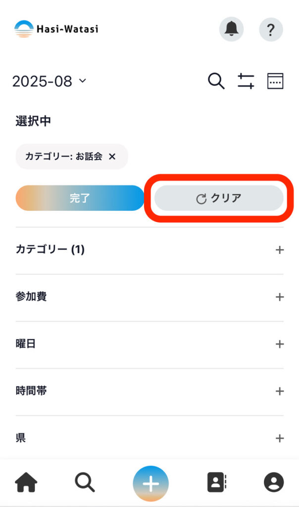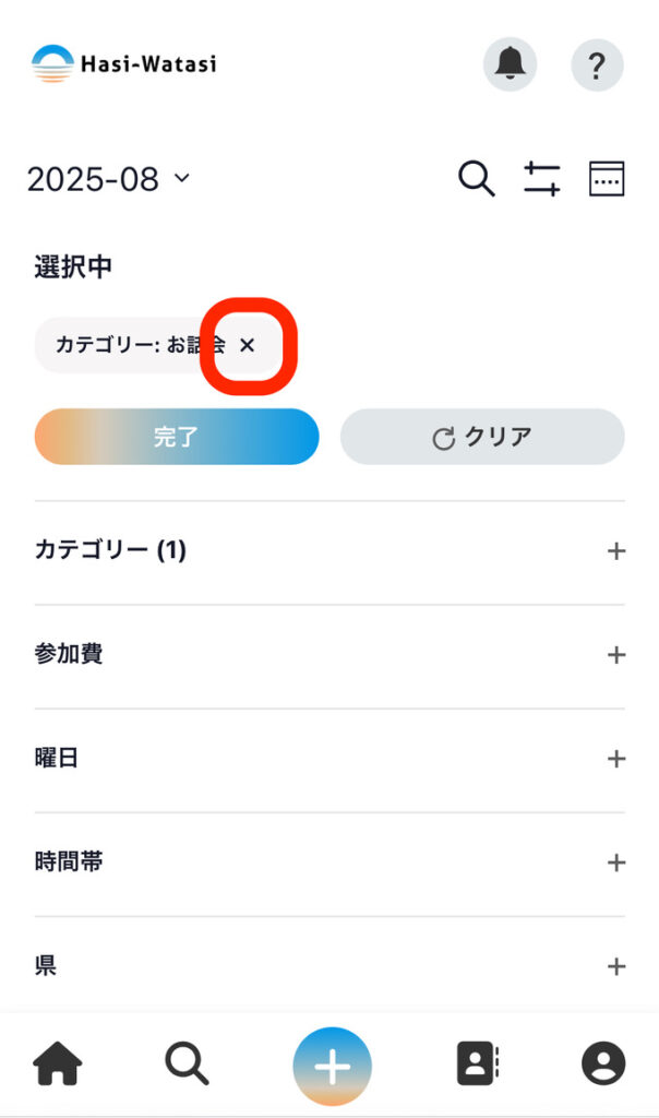 ⑥選択したものを解除したい場合は「×印」を押します。すべて解除したい場合は、「クリア」ボタンを押します。