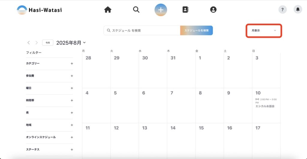 ②「月表示」プルダウンを押すと表示方法の切り替えができます。